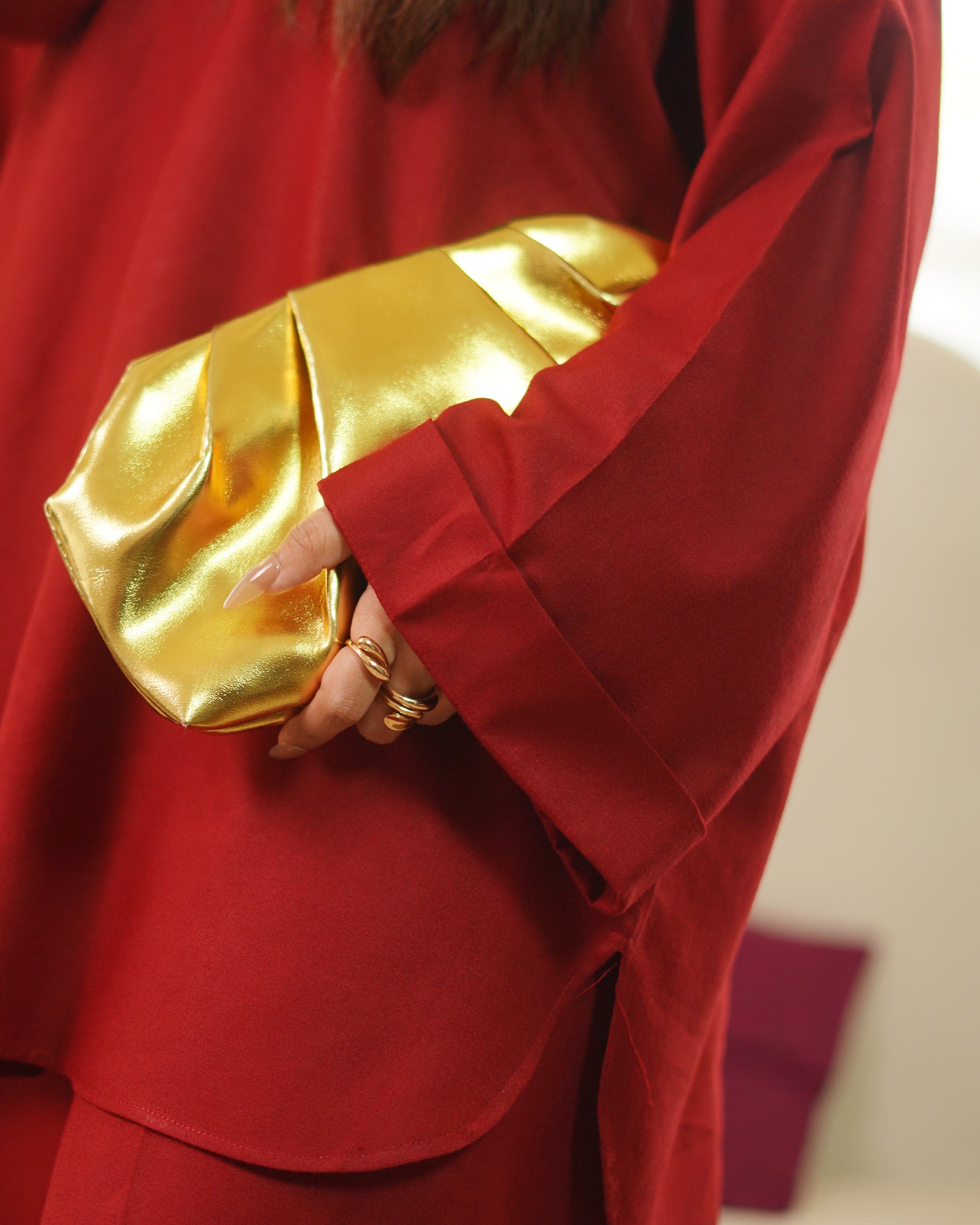 Introducing Nua Official’s Deep Red Classic Button-Detail Two-Piece, a timeless outfit crafted in a rich crimson shade that instantly elevates your presence.